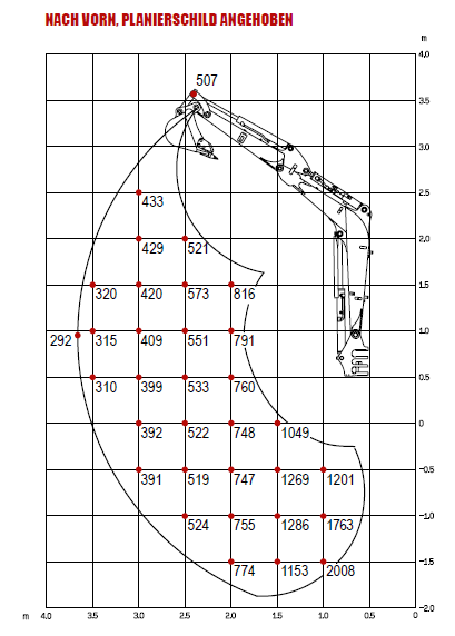 • Auslegerschwenkung: (L/R): 80° / 50°