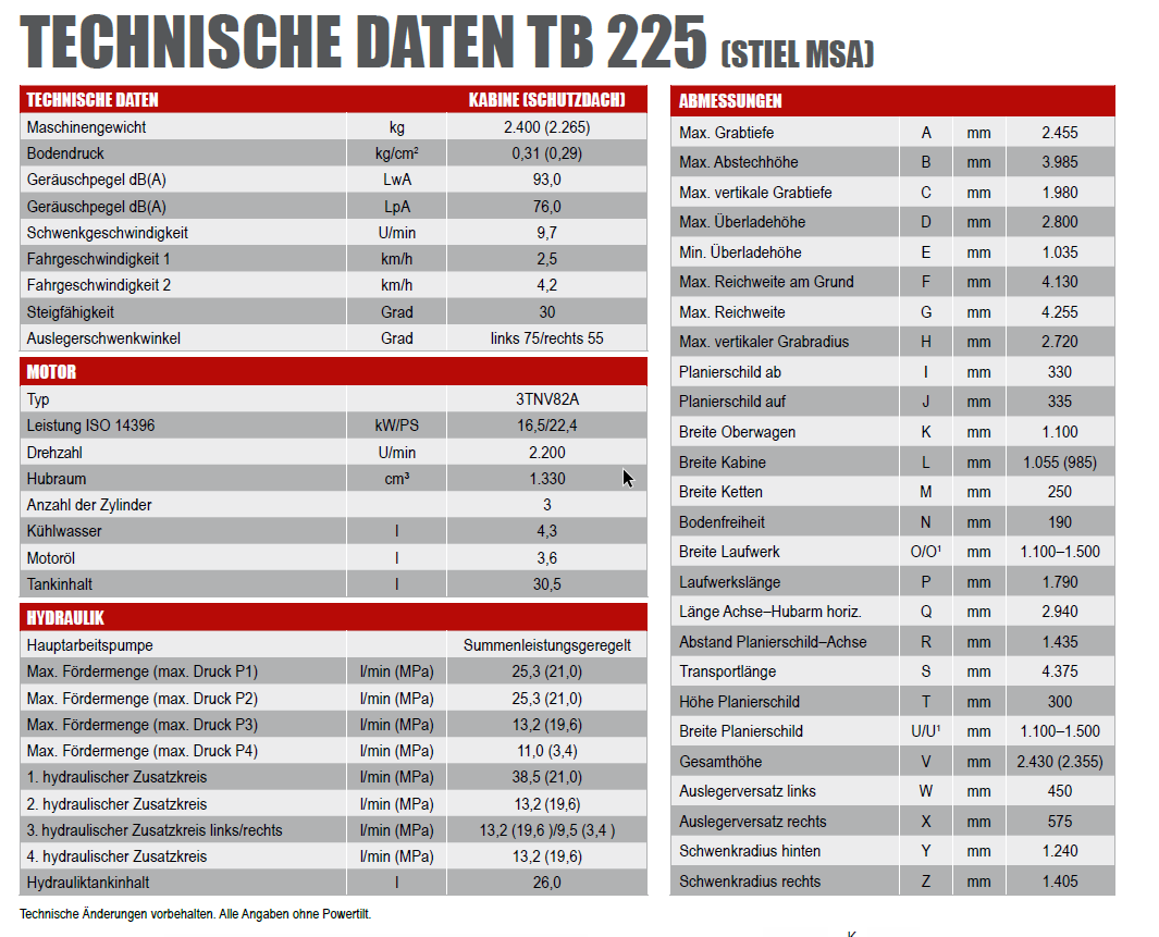 • Betriebsgewicht: 1770 kg