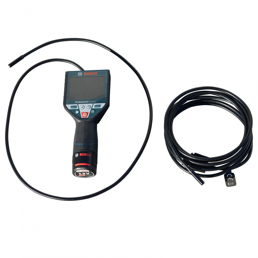 Die Bosch Professional Akku-Inspektionskamera GIC 120 ermöglicht Einblicke an verwinkelten oder verborgenen Stellen. So findet sie beispielsweise Anwendung in verstopfen Rohren, im Motorraum oder auch in Hohlräumen von Wänden. Die Energieversorgung erfolgt über vier 1,5 V AA Batterien, sodass ein hochflexibler Einsatz möglich ist. Das 2,7“ Farbdisplay liefert ein hochauflösendes Bild, wodurch sich perfekte Einblicke gewinnen lassen. Der Compass View bietet dem Nutzer hierbei eine ständige und optimale Orientierung. Der Kamerakopf ist an einem 120 oder wahlweise an einem 300 cm langen Schwanenhals befestigt, der eine hohe Flexibilität bietet. Dank des Durchmessers von 8,5 mm können auch enge Stellen mühelos inspiziert werden. Die Endoskopkamera verfügt über einen digitalen Zoom, der ein besseres Erkennen von Details ermöglicht. Die LED-Beleuchtung ist in 3 Stufen anpassbar, sodass in jeder Situation die passende Beleuchtung zur Verfügung steht.