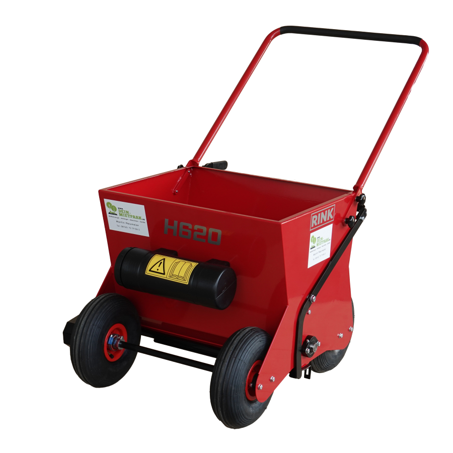 Die Streueinrichtung des RINK Handstreuer H 620 wird über eine Kette angetrieben.